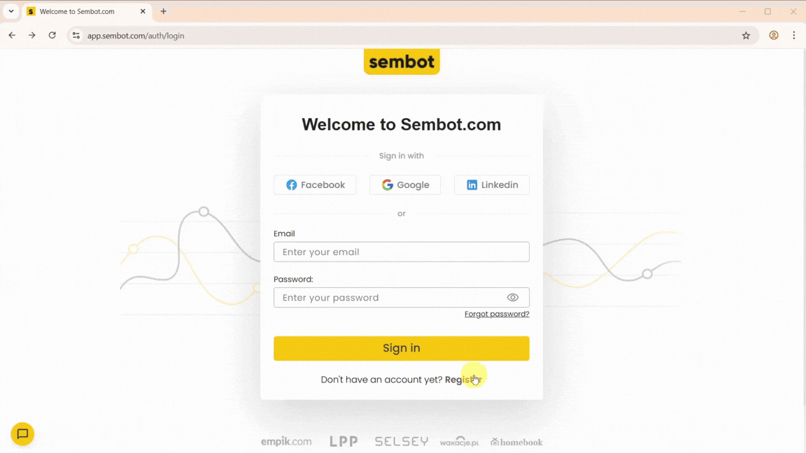 Go to https://app.sembot.com/ and click Register.