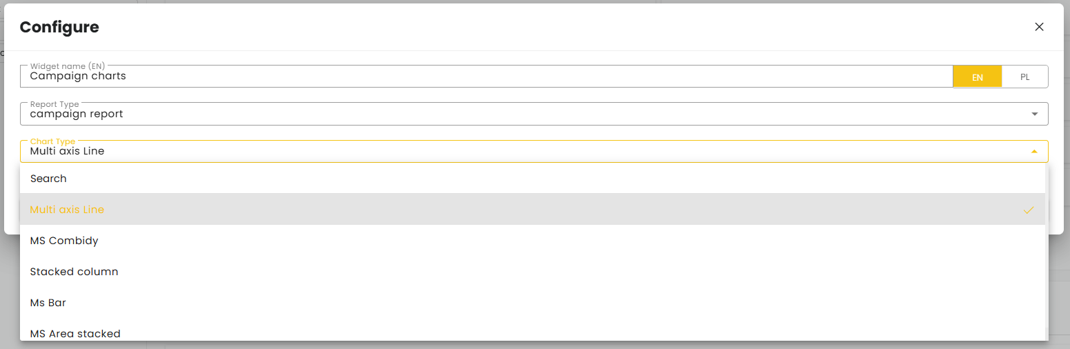 Each widget can be further adjusted in the “Configure” dialog, where you can: