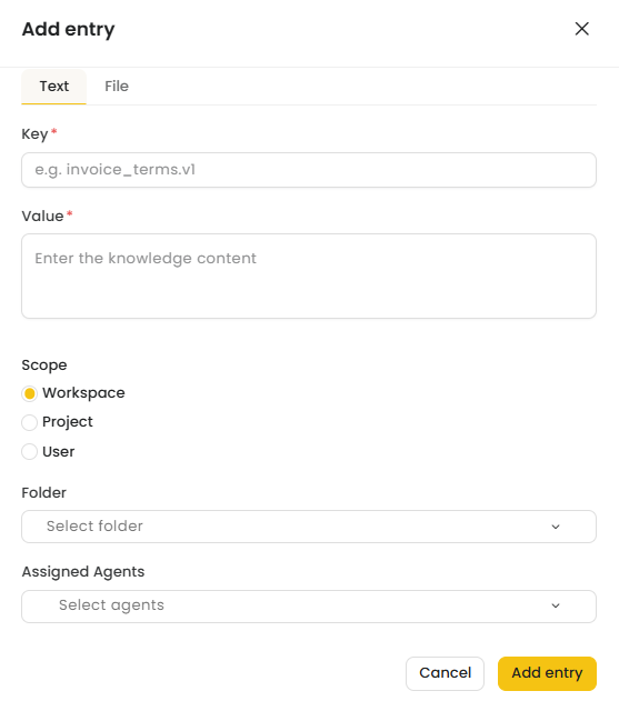 • Assigned Agents – optionally select which agents should use or prioritize this entry.