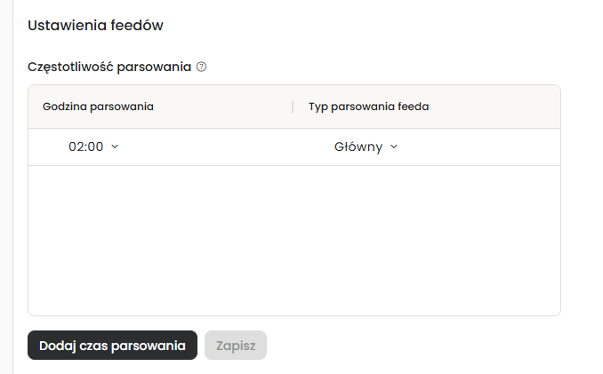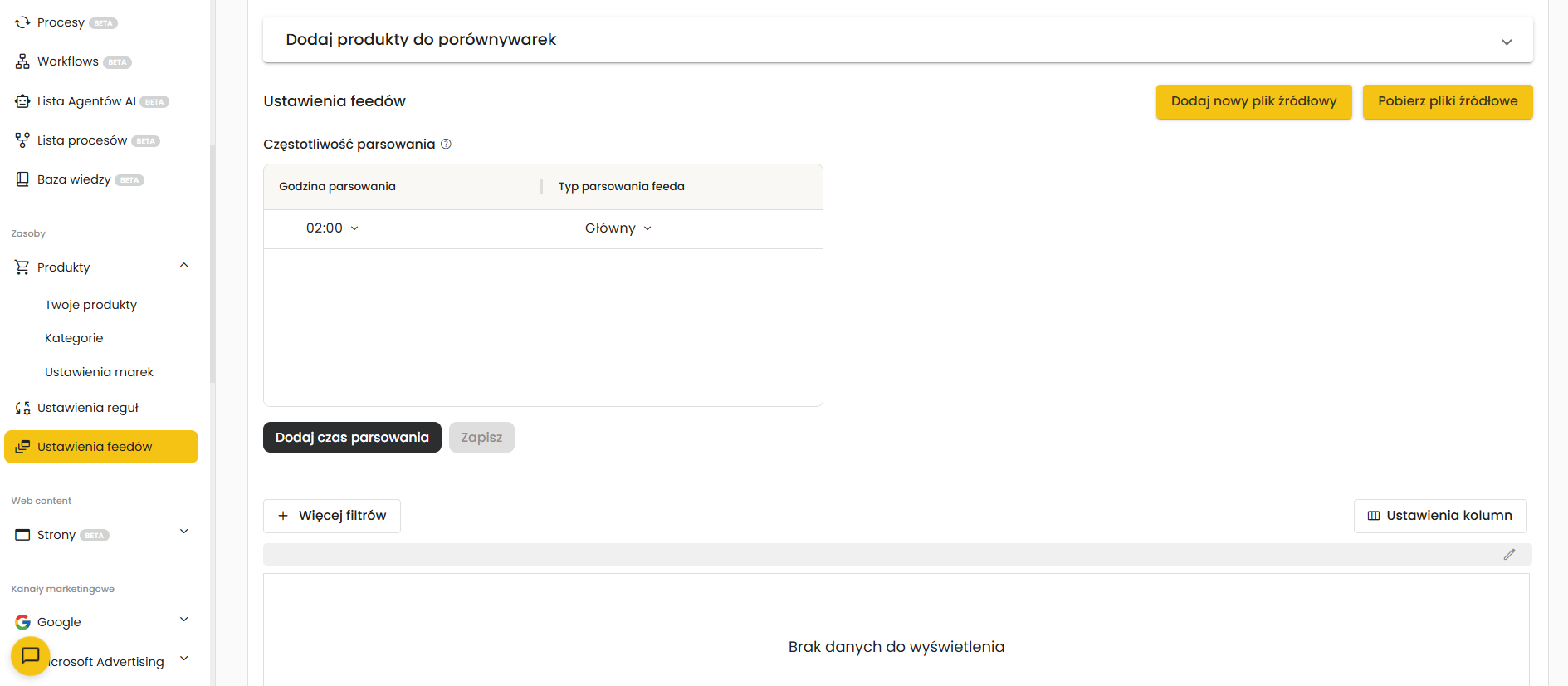 W kolejnym kroku system przekieruje Cię ponownie do zakładki "Ustawienia źródeł", gdzie będziesz mógł ustawić częstotliwość prasowania, czyli aktualizacji pliku wejściowego.