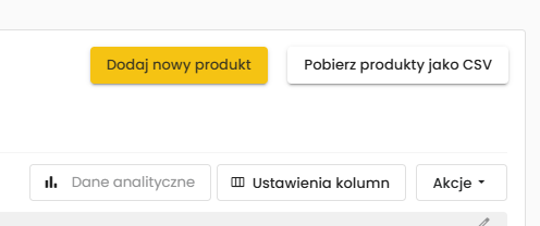 Aby ręcznie dodać produkty przejdź do zakładki Produkty - Twoje produkty, a następnie kliknij znajdujący się w prawym górnym rogu nad tabelą przycisk Dodaj nowy produkt.