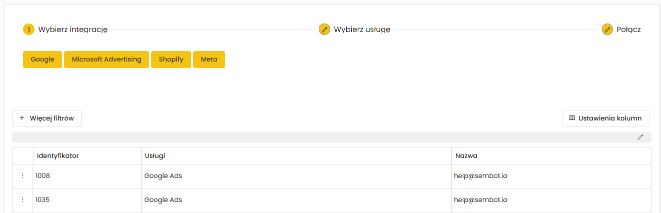 - Microsoft Ads - generowanie kampanii przez panel Sembota. Połączenie pozwala na stworzenie kampanii reklamowych, które trafią do paneli Microsoft Ads, gdzie wystarczy je aktywować. System zaciąga także dane z konta reklamowego, które można wykorzystać do generowania raportów z wynikami.